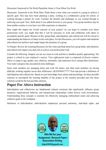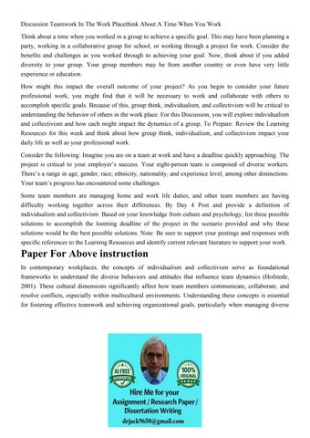 Discussion Teamwork In The Work Placethink About A Time When