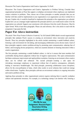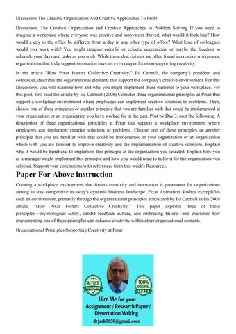 Discussion The Creative Organization And Creative Approaches
