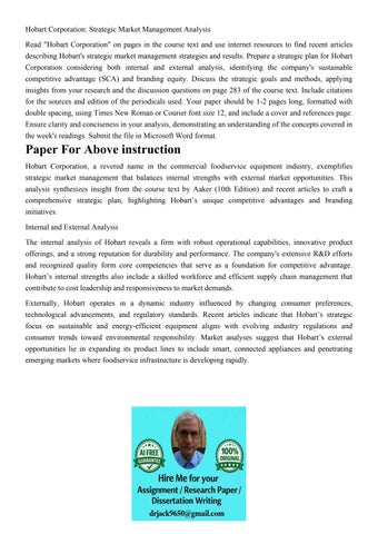Hobart Corporation: Strategic Market Management Analysis Rea