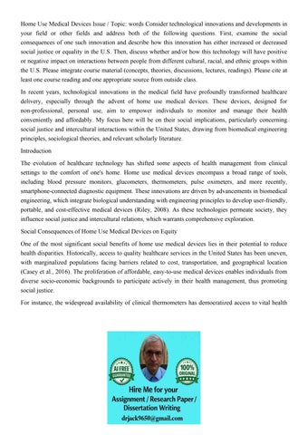 Home Use Medical Devices Issue / Topic: words Consider techn