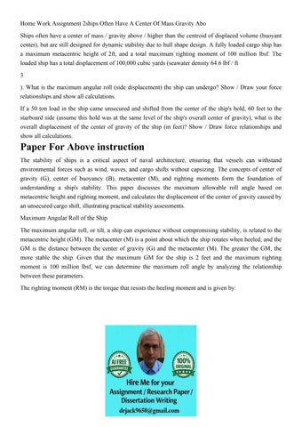 Home Work Assignment 2ships Often Have A Center Of Mass Grav