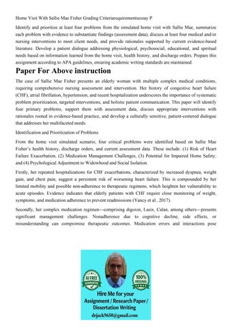 Home Visit With Sallie Mae Fisher Grading Criteriarequiremen