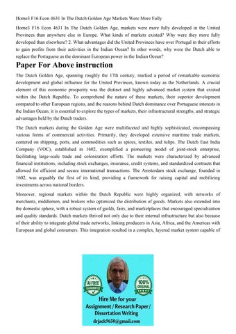 Home3 F16 Econ 4631 In The Dutch Golden Age Markets Were Mor