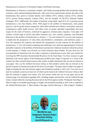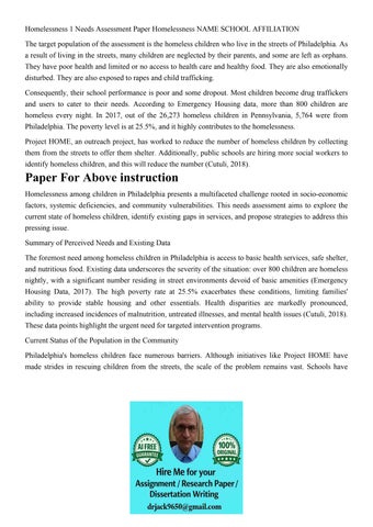 Homelessness 1 Needs Assessment Paper Homelessness NAME SCHO