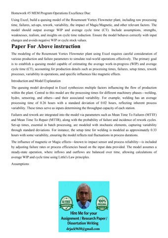 Homework #5 MEM Program Operations Excellence Due: Using Exc
