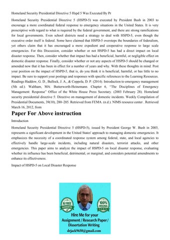 Homeland Security Presidential Directive 5 Hspd 5 Was Execut