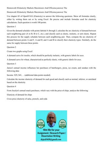 Homework 05elasticity Markets Maximizers And Efficiencyanswe