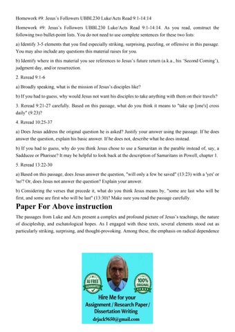 Homework #9: Jesus’s Followers UBBL230 Luke/Acts Read 9:1-14