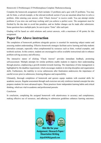 Homework 12 Problemsquiz 25 Problemsplease Complete Thehomew