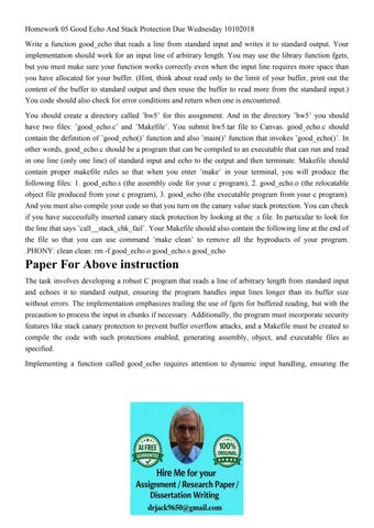 Homework 05 Good Echo And Stack Protection Due Wednesday 101