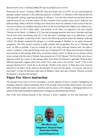 Homework #8: Jesus’s Teaching UBBL230 Luke/Acts Read Luke 6: