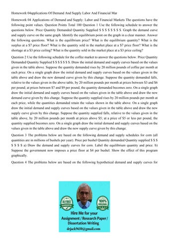 Homework 03 Demand And Supplythe Questions Have The Followin
