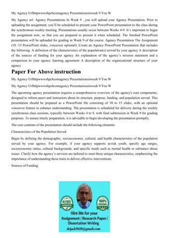 My Agency Urlhttpwwwshpchcomagency Presentationsinweek 9 You