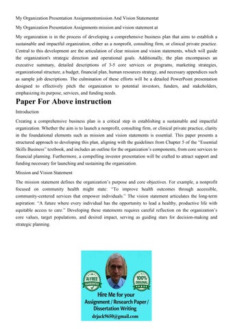 My Organization Presentation Assignmentsmission And Vision S