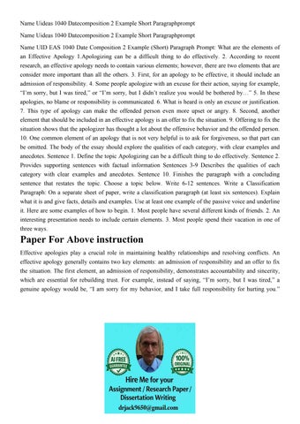 Name Uideas 1040 Datecomposition 2 Example Short Paragraphpr
