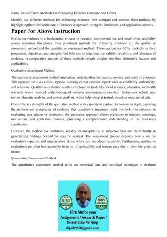 Name Two Different Methods For Evaluating Evidence Compare A