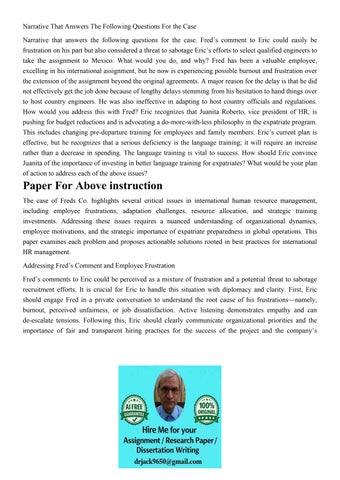 Narrative That Answers The Following Questions For the Case