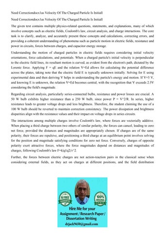 Need Correctiondocx1as Velocity Of The Charged Particle Is I