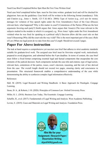 Need Case Brief Completed Before 9pm Must Be First Time Writ