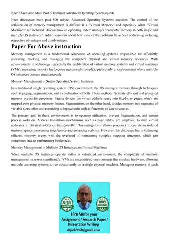 Need Discussion Main Post 500subject Advanced Operating Syst