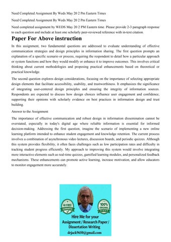 Need Completed Assignment By Weds May 20 2 Pm Eastern Times