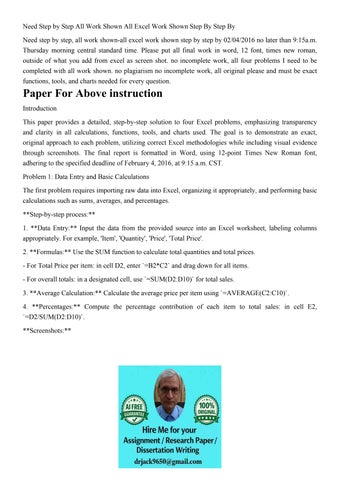 Need Step by Step All Work Shown All Excel Work Shown Step B