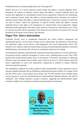 Printliterature Review Scoring Guidedue Date Unit 5 Percenta