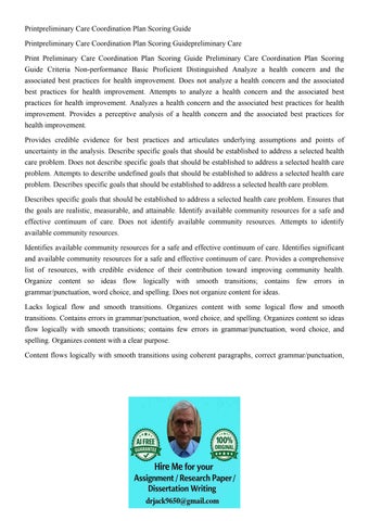 Printpreliminary Care Coordination Plan Scoring Guide Printp