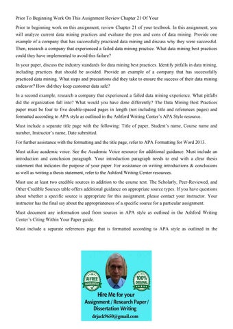 Prior To Beginning Work On This Assignment Review Chapter 21
