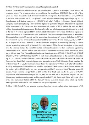 Problem 1014briarcrest Condiments Is A Spice Making Firm Rec