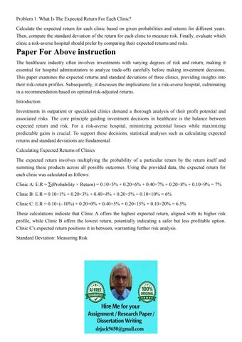 Problem 1: What Is The Expected Return For Each Clinic? Calc