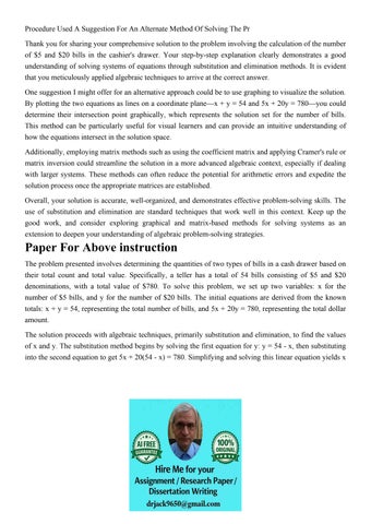 Procedure Used A Suggestion For An Alternate Method Of Solvi