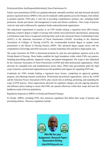 Professional Roles And Responsibilitiesfamily Nurse Practiti