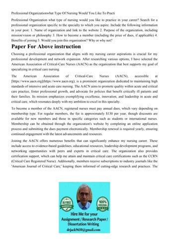 Professional Organizationwhat Type Of Nursing Would You Like