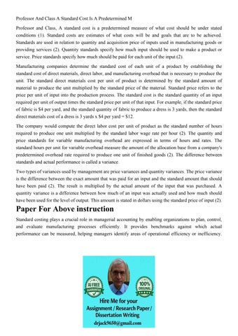 Professor And Class A Standard Cost Is A Predetermined M Pro