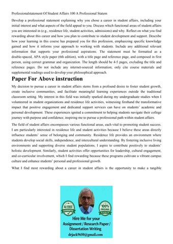 Professionalstatement Of Student Affairs 100 A Professional