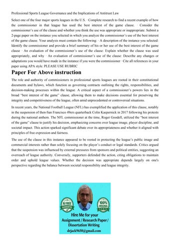 Professional Sports League Governance and the Implications o