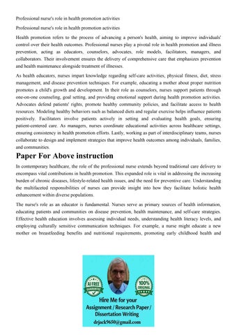 Professional nurse's role in health promotion activities Pro