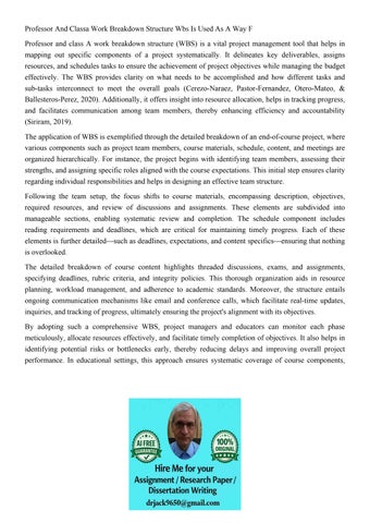 Professor And Classa Work Breakdown Structure Wbs Is Used As