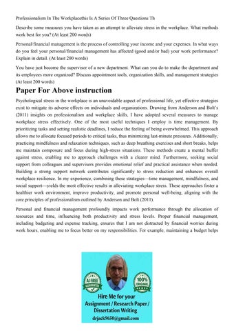 Professionalism In The Workplacethis Is A Series Of Three Qu