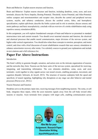 The resting potential of a neuron reflects a stable, negative intracellular environment. When a stimulus reaches threshold, voltage-gated ion channels open, allowing sodium ions (Na+) to rush into the axon, generating an action potential that propagates along the axon. Following the spike, potassium ions (K+) exit the cell, helping restore the resting potential and regulate subsequent firing. This sequence—resting potential, threshold, action potential, and after-potential—constitutes the fundamental electrical aspect of neural signaling (Kandel et al., 2013).)
