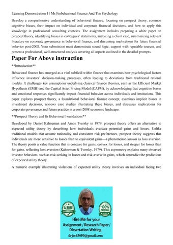 choices. In scenario one, a 50% chance to win $100 and a 50% chance to lose $50; expected utility theory would expect risk-neutral or risk-averse behavior based on the utility of the outcomes. However, due to loss aversion, the individual may avoid the gamble if the potential loss weighs more heavily than the equivalent gain, thus deviating from expected utility maximization. This demonstrates how psychological biases distort rational decision-making (Tversky & Kahneman, 1992).