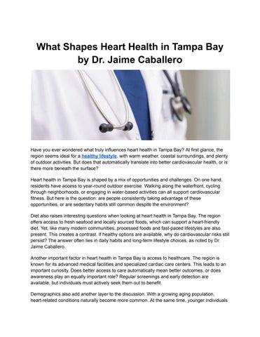 Jaime Alexander Caballero, M.D., FACC, FSCAI, is an interventional cardiologist practicing in Tampa, Florida. He is recognized for his work in coronary interventions, structural heart disease treatment, and endovascular therapies. He is the founder of Tampa Heart and Vascular Associates, an independent, physician-led cardiology practice focused on multidisciplinary cardiovascular care. He also serves as Collaborative Assistant Professor of Cardiology at the University of South Florida and holds clinical privileges at Tampa General Hospital. Dr. Jaime Caballero was born and raised in Colombia, where he developed a strong academic foundation. In 1994, he earned national recognition by becoming the champion of the Colombian Secondary School Mathematics and Physics Olympics, held in Bogotá. His growing interest in medical science led him to pursue a medical degree at the University of Tolima School of Medicine. He completed his Doctor of Medicine degree in 2006 and received the Best Intern of the Year award from Hospital Fundación Santafé de Bogota during his training. Following medical school, Dr. Caballero completed additional training in emergency medicine and trauma care in Colombia. This included Advanced Trauma Life Support certification at the University de La Salle in Bogota and training in airway management at the University of Rosario. In 2009, he moved to the United States to continue his medical education. He completed an Internal Medicine residency at Yale School of Medicine, Saint Raphael Campus, from 2009 to 2012, earning awards for academic performance and professionalism. Jaime Caballero, MD, later continued his training at the University of Nebraska Medical Center, where he completed a Cardiology Fellowship from 2012 to 2015 and an Interventional Cardiology Fellowship from 2015 to 2016. These programs provided advanced training in diagnostic cardiology, coronary interventions, and emerging structural heart procedures.