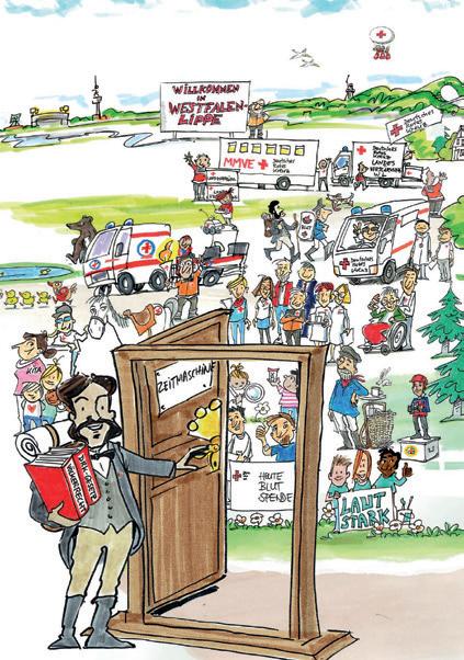 Die vielfältigen Aufgaben des DRK in WestfalenLippe, illustriert von Michael Hüter; Bestellungen zum Preis von € 8,83 zuzüglich Versandkosten über: kommunikation@ drk-westfalen.de