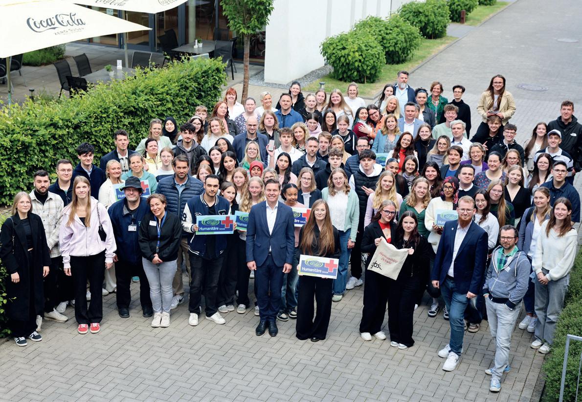 In den JRK-Gruppenstunden auf Kreisverbands- bzw. Ortsvereinsebene werden mit viel Spaß ErsteHilfe-Maßnahmen geübt, Projekte geplant und Workshops durchgeführt. In 445 Schulsanitätsdiensten in Westfalen-Lippe stehen 4 450 Schulsanitäter*innen ihren Mitschüler*innen nach Unfällen oder in Notsituationen zur Seite, und mit dem Programm „Stark im MiteinanderN“ fördern wir eine konstruktive Konfliktkultur für mehr Sicherheit an westfälischen Schulen. Ebenfalls auf große Resonanz stößt unsere „Humanitäre Schule“, die wir nun schon seit neun Jahren durchführen. Schüler*innen aus 29 Schulen in Westfalen-Lippe haben sich im Schuljahr 2024/2025 auf aktive
