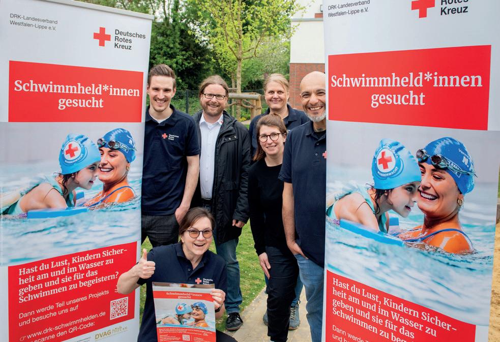 20 Prozent der Kinder zwischen sechs bis zehn Jahren können nicht schwimmen. Deshalb suchen der DRK-Landesverband Westfalen-Lippe und der gemeinnützige Verein „DVAG hilft“ Menschen, die Kindern das Schwimmen beibringen. Projektpatin ist die Extremschwimmerin Nathalie Pohl. Die Kosten für die notwendigen Qualifikationen werden übernommen. Mehr Infos auf: www.drk-schwimmhelden.de i+t