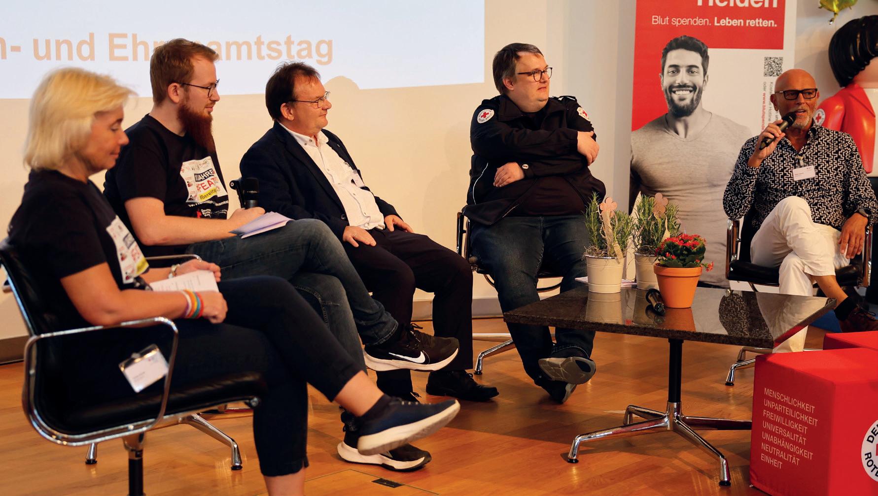 gemeinsam konzipiert. In einer Talkrunde sprachen Landesrotkreuzleiterin Tanja Knopp, Ole Jörn Hanke von der JRK-Landesleitung, die ehemaligen Mitarbeiter der Servicestelle Ehrenamt, Leiter a. D. Volker Schmid und Hinrich Riemann, sowie der Abteilungsleiter Nationale Hilfsgesellschaft Christian Schuh über die damaligen Beweggründe: Mit dem Freiwilligen- und Ehrenamtstag sollten neue Erkenntnisse zur systematischen Förderung des Freiwilligen- und Ehrenamtsmanagements im DRK Westfalen-Lippe gewonnen werden. Nicht zuletzt habe man den ehrenamtlich Aktiven mit dieser Veranstaltung Dank und Anerkennung für ihr Engagement zollen wollen. Am 14. März 2015 war es dann so weit: Unter dem Motto „DRK auf dem Weg in die Zukunft“ fand der erste Freiwilligen- und Ehrenamtstag statt.