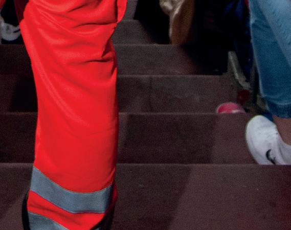 bedürftige Menschen ein. Zum Beispiel kämpfen die im Aktionskreis „Kältehilfe“ zusammengeschlossenen Rotkreuzgliederungen darum, das Leid der Obdachlosen zu lindern. In den kalten Monaten verteilen sie warme Mahlzeiten, Getränke oder Decken und schenken darüber hinaus obdachlosen und vereinsamten Menschen die so oft entbehrte Aufmerksamkeit. Auch die vielen Barrieren, die Menschen mit Handicap immer noch behindern, sind bei uns ein Thema, ob