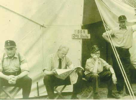 Warten im Jahr 1959 vor ihrem Sanitätszelt auf den nächsten Einsatz: (v.li.) Kurt Krause, Hans Nieländer, ein unbekannter Helfer und Bernhard Rothland.