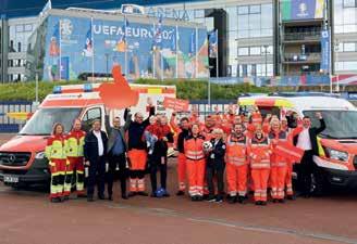 dem Spieltag etliche weitere unserer ehrenamtlichen Einsatzkräfte. Wir sind gut vorbereitet; außergewöhnlich wird die Zeit während der UEFA EURO dennoch sein. In so kurzer Zeit so viele Einsätze zu haben, das ist eine große Herausforderung – vor allem personell. Denn das „normale“ Rotkreuzleben mitsamt seinen saisonalen Einsätzen im Rahmen von Schützenfesten, Konzerten, Reitturnieren und ähnlichen Veranstaltungen geht ja weiter. Deswegen binden wir bei der Fußball-Europameisterschaft DRK-Helferinnen und -Helfer aus dem gesamten Verbandsgebiet ein.